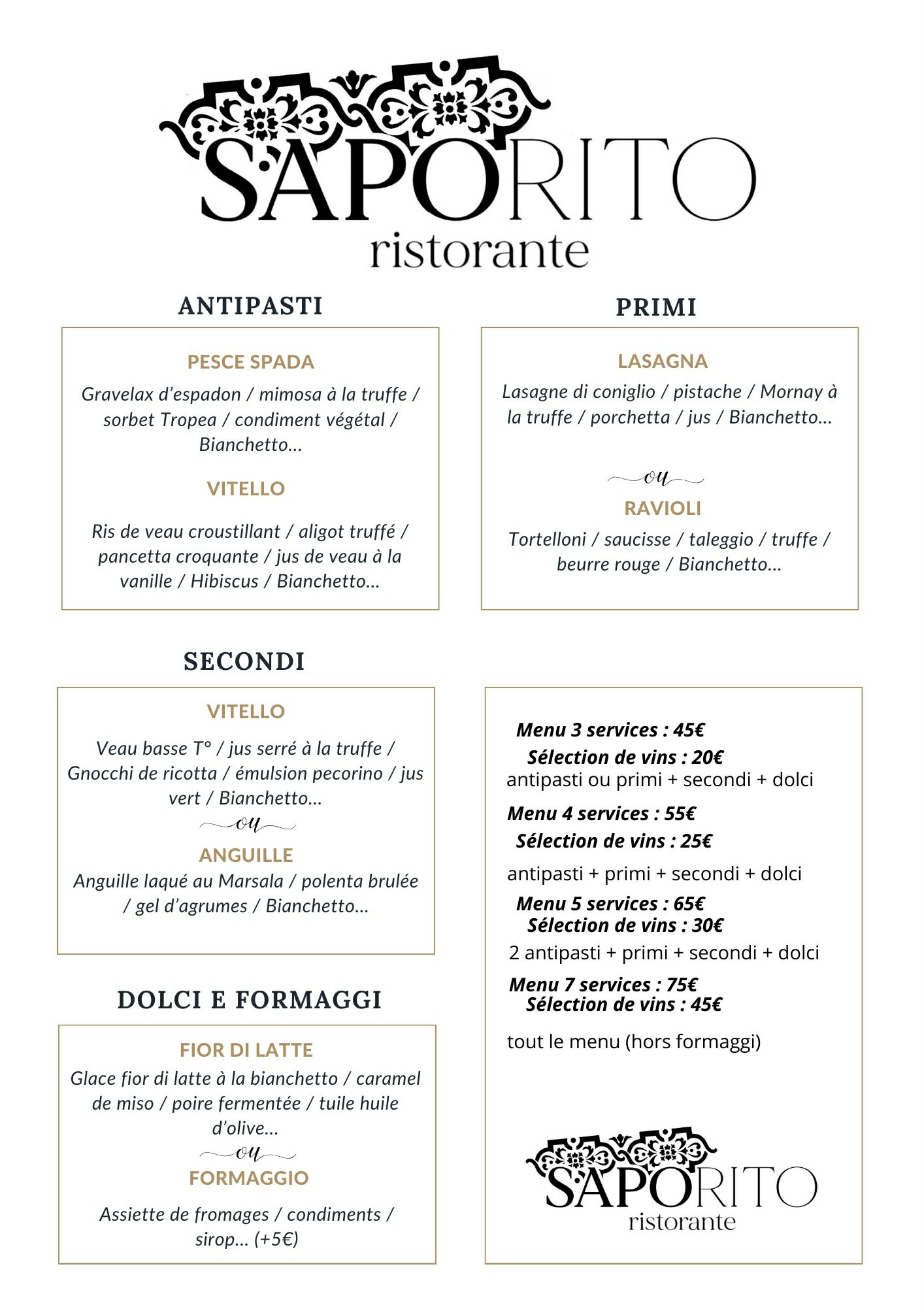 Notre interprétation de la gastronomie italienne fête des mères Menu 10-11-12 Mai Ce menu sera disponible le week-end du 10-11-12 mai MIDI ET SOIR Nous serons donc EXCEPTIONNELLEMENT ouvert le dimanche Cliquez sur l’image pour voir le menu en grand. Nouveau Menu Du 18 février au 7 mars ⚠️ NOUS NOUS ADAPTONS À TOUS CHANGEMENT DANS LE MENU TANT QUE NOUS SOMMES PRÉVENUS À L’AVANCE ⚠️ Intolérance, allergie, végétarien… Cliquez sur le menu pour le voir en plein écran.Vous trouverez également le lunch de la semaine sur notre page Facebook.